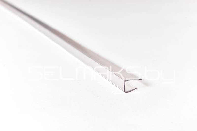 Профиль поликарбонатный торцевой прозрачный 2100 мм. Применяется для защиты поликарбоната от пыли, грязи мошек и т.п. Торцевой профиль увеличивает срок службы поликарбоната и помогает сохранить первичный внешний вид листа.