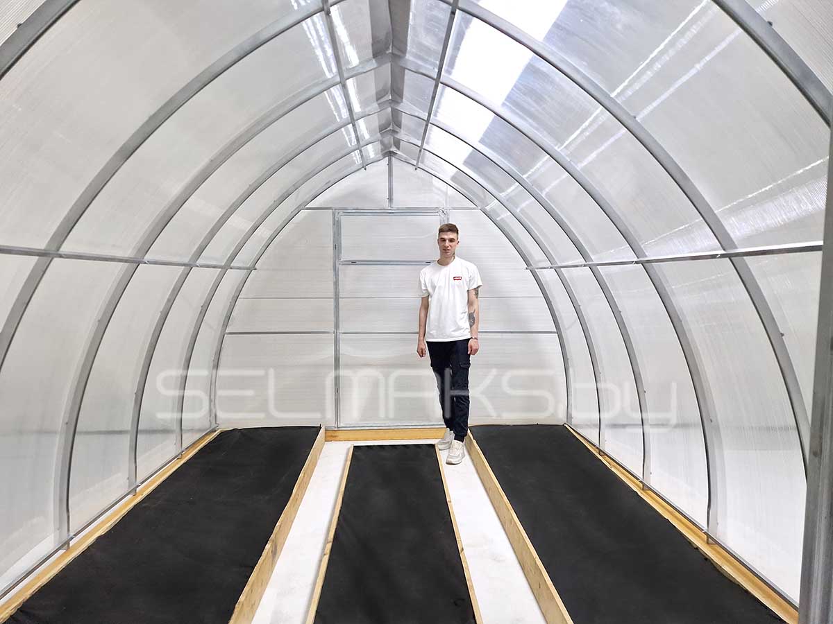 Мы производим теплицы в промышленных масштабах. Производим теплицы как для тепличных комплексов, так и дачных хозяйств. Производим для Беларуси, России, Евросоюза. Мы сами производим и теплицы и поликарбонат.
