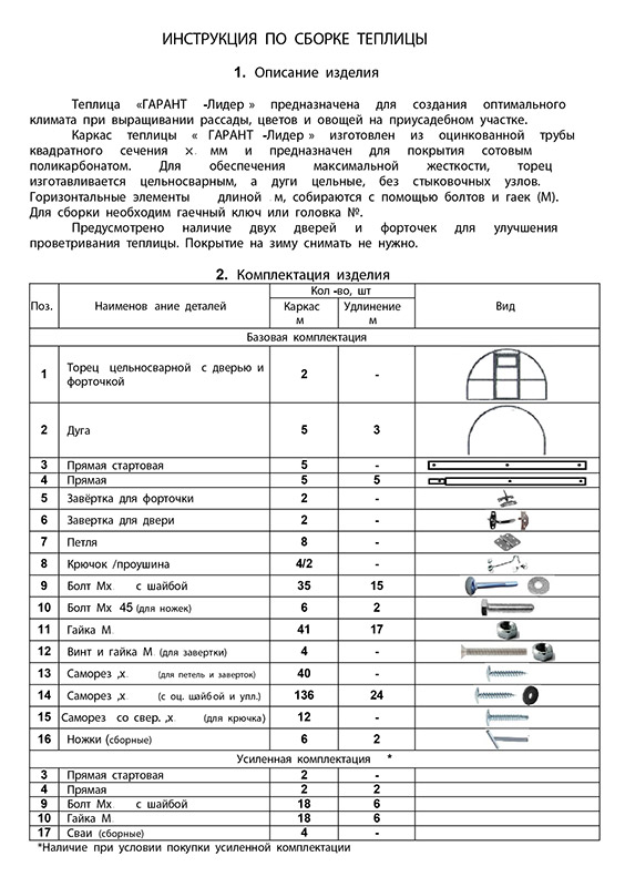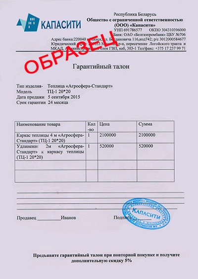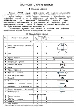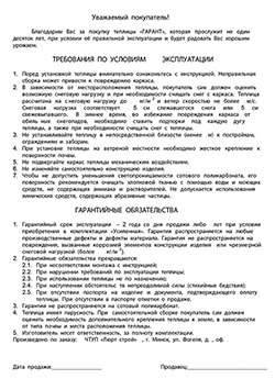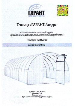 Каждая теплица Гарант имеет паспорт изделия с голограммой, защищающей товар от подделок.