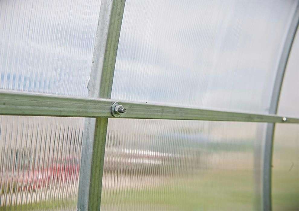 Краб-системы позволяют избежать сверления металлического профиля, что сохраняет цинковое покрытие и продлевает срок службы теплицы. Просверленный металл не обладает первоначальной крепостью, и это необходимо учитывать.